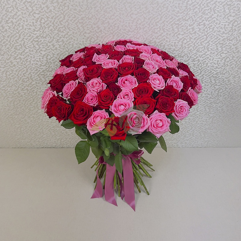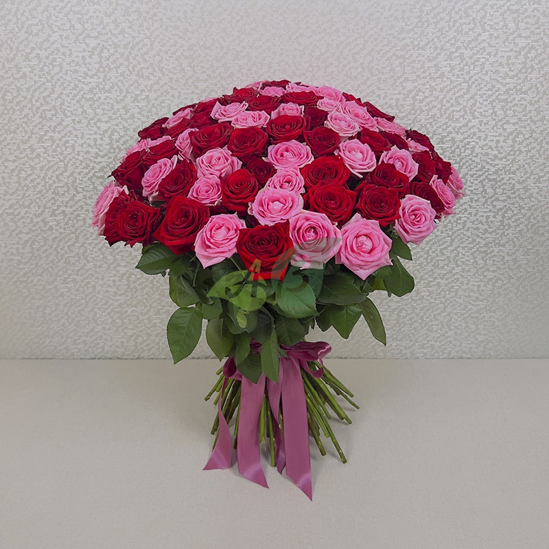Букет 101 красная и розовая роза
